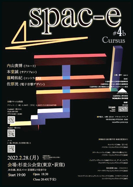 主催、制作: spac-e / 助成: 公益財団法人日本室内楽振興財団、公益財団法人かけはし芸術文化振興財団、公益財団法人東京都歴史文化財団 アーツカウンシル東京、公益財団法人野村財団 / 後援: IRCAM / 制作協力: ナヤ・コレクティブ