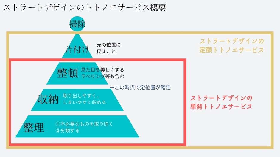 一般的に「片付け」というと、大変広く様々な意味を含みますが、整理収納サービスとは①不必要なモノを取り除き、②種類別/使用頻度別等に分類し、③使い勝手を考慮して収納することで、定位置を決める というサービスです。オフィス空間のトトノエには様々なメリットがあります。代表的な効果は、時間的効果(探し物時間減少)・経済的効果(人件費や経費削減)・空間効率改善効果(面積縮小や有効利用)・対外的効果(社外からの信用・信頼)・精神的効果(ストレス軽減)・コミュニケーション効果(社内のコミュニケーション良化)等があります。
