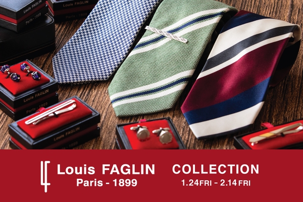 メンズアクセサリーのファクトリーブランドとして、一世紀にわたりデザイン開発を担ってきた「Louis FAGLIN」の高いデザイン性と品質性を誇るラインアップは、ビジネススタイルやフォーマルスタイルを気品高く演出します。