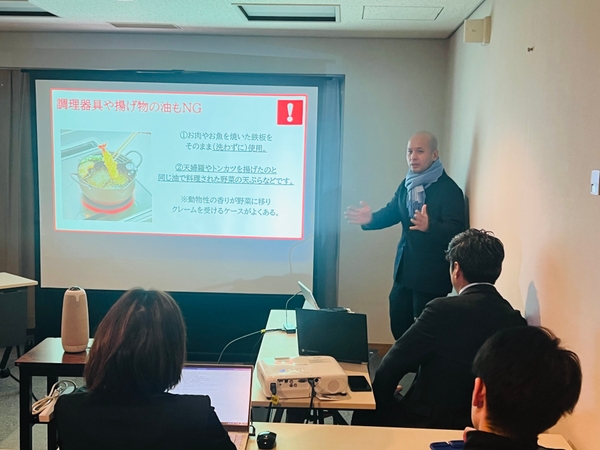 さらに、調理時の注意点や外国人観光客(インバウンド)を含む多様なお客様への対応についても触れ、ヴィーガン料理が持つ幅広い可能性を示しました。