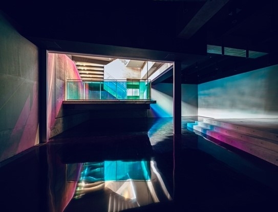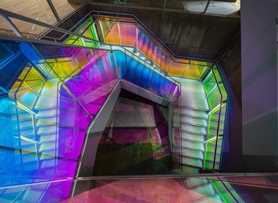 上記以外にも七色に光るカメレオンフィルムを多用した、理系のイメージを払拭するようなスポットを作りました。また、情報学部らしいデジタル技術を取り入れ、受付システムを導入し、窓口がない事務室を設置します。事務相談の完全オンライン化を目指して、SlackやZoom等のツールを効果的に活用し、学生が相談しやすい環境を整備しています。