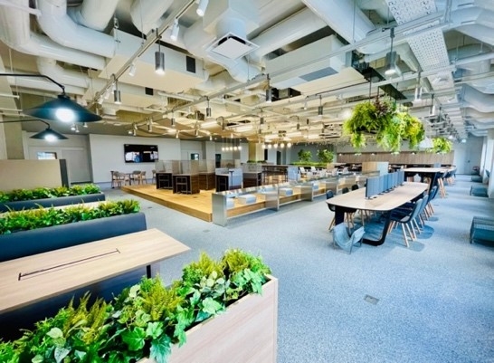 多様な授業形態に対応可能な、学生が自由に利用できるスペースです。情報学部では、文部科学省が定める上限の60単位までメディア授業を取り入れます。リアル空間とサイバー空間をフル活用して、時間に縛られない効率的な学びを促進します。地元・東大阪市の企業と連携して、お洒落で居心地が良い空間となっています。