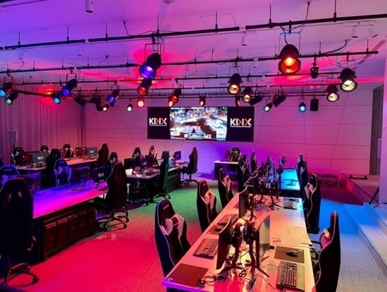 急激に成長しているesports業界。大学の教育研究を通じて優秀な人材を育成する拠点として、esports施設を設置。全学生が利用できるこの施設では、プレイヤーとして技術・知識を身につけることはもちろんのこと、最新の照明・音響・配信機器を完備しているため、イベントの企画運営などを通じて、esports関連の様々な技術・知識を身につけることができます。また、外部団体が施設をレンタルして大会やイベントを開催することも可能です。