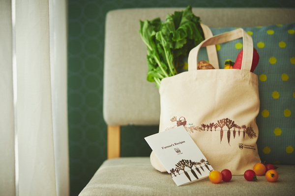 チェックアウト時には、摂取した野菜の量をベジログでチェックし、目標の1.5kgを摂取できたかを振り返ります。目標を達成したあかつきには、リゾナーレ那須の畑をイメージしてデザインされた「エコベジバッグ」と、シェフ考案の「ベジレシピ」がプレゼントされます。野菜の買い物へ活用できるバッグと、自宅でも野菜の調理を楽しめるレシピを活用して、帰宅後も野菜に愛着を持ちながら野菜不足を解消することができます。さらに、収穫した農園の野菜を「追い野菜」として、ご自宅へ持ち帰ることが可能です。