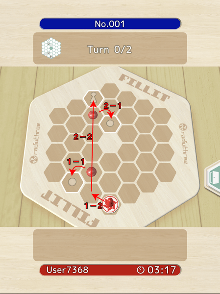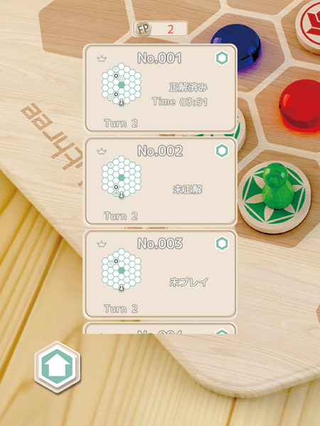 決められた手数で目的の場所にコマを移動させる1人用のパズルが出来るようになり、じっくり考えて遊べるようになりました。