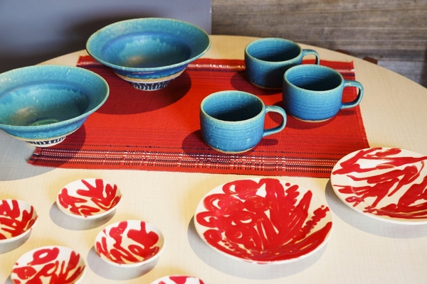 沖縄の伝統工芸品が飾られた「ゆんたくライブラリー」