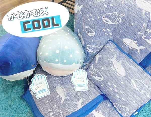 じんべえさんのぬいぐるみも登場♪こちらもひんやりクールなアイテムなので、抱き枕やクッションとして使えばひんやり快適です。
