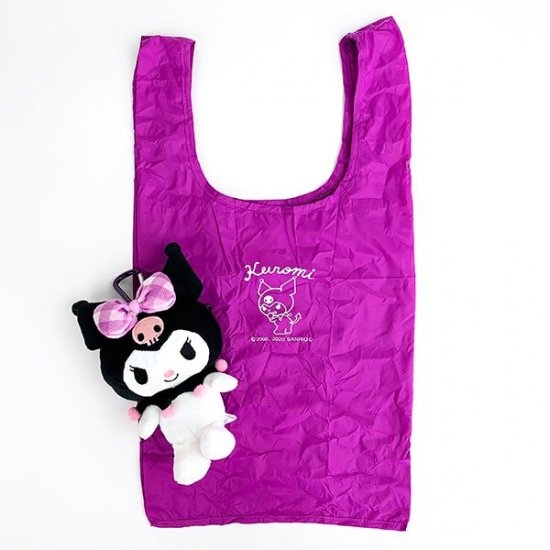まずは、クロミちゃんのエコバッグです。ビビッドなパープルが大人っぽさを伺わせるデザインのエコバッグです。サイズは、19.5×11.5×9.5cmです。マチ付きなのでしっかり大容量入ります。スーパーやお洋服を買った時など、色々な場面で重宝しそうですね。