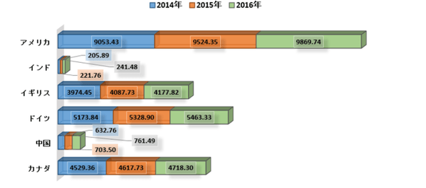 一人当たりの医療費、PPP(米ドル)– 2014-2016年