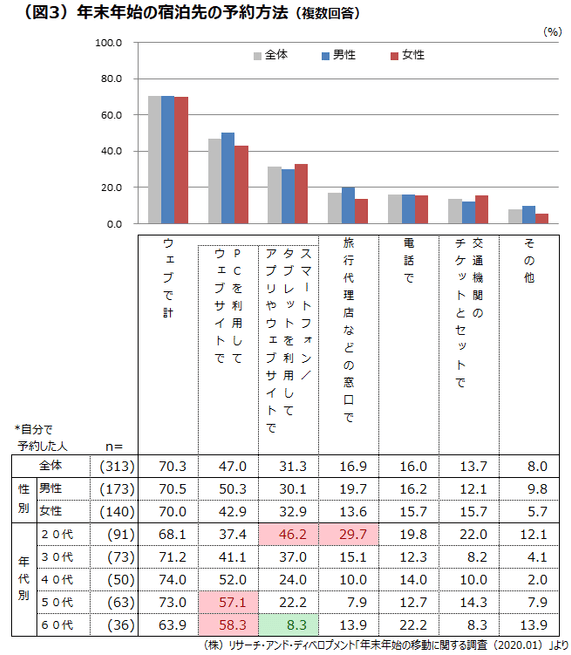 この年末年始、遠出や泊りがけの旅行をされた方は、上手く予約が取れましたか。株式会社リサーチ・アンド・ディベロプメント(所在地:東京都新宿区、代表取締役:松田 武久)では、移動する人が多い年末年始の時期に公共交通機関や宿泊施設を利用した方に、チケット手配や予約について調査をしました。