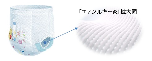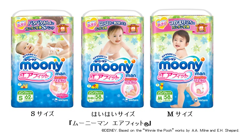 そこでこの度、まだまだ繊細なお肌の低月齢赤ちゃんのために、お肌にやさしい「エアシルキー」を採用した『ムー二―マン エアフィット(R)』Sサイズ、はいはい用、Mサイズを新改良し、2015年9月下旬より順次発売いたします。