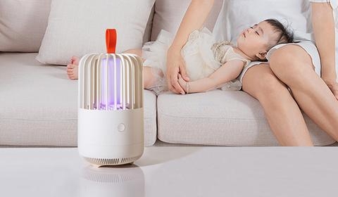 モスキラーは夏の季節に鬱陶しい害虫を、虫が寄って来やすい周波数に固定されたLED紫外線ランプと強力なファンの吸引力で駆除できる捕虫器です。