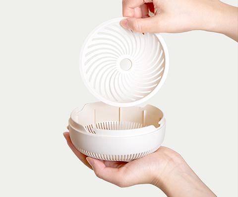 インナーは脱出防止ネットがあり、吸い込んだ蚊や虫等を捕虫容器内から逃さず風化死させます。安心と同時に、本体から分離可能な蚊取ボックスのお手入れも簡単に。