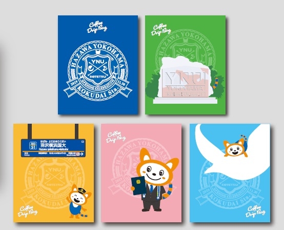 横浜国立大学にまつわるモチーフや「そうにゃん」をパッケージにデザインした手軽にコーヒーを楽しめる、ドリップコーヒー(1セット5袋入り)