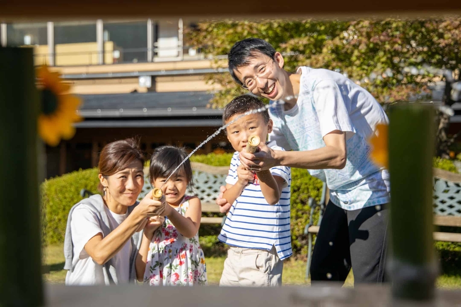 敷地内にある約300坪の日本庭園で、竹製の水鉄砲に界 伊東の源泉を入れて的を撃ちます。毎分600リットルの湧出量を誇る界 伊東だからこそ提案できるコンテンツです。ひまわりやあじさいをあしらったかわいらしい竹筒の的を狙い撃ち、子供にとっては目新しく、大人にとっては童心に返る体験を通して、夏の思い出作りができます。