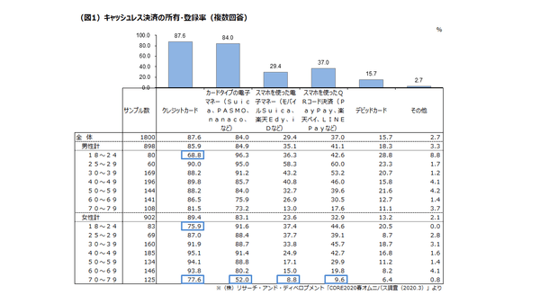 ●キャッシュレス決済の所有・登録が進んでいないのは女性70代。(図1)