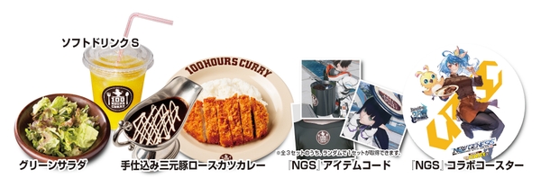今回のキャンペーンセットには、『NGS』ゲーム内で使用可能な、「100時間カレー」オリジナルコラボアイテムが取得できるアイテムコードが含まれており、『NGS』ゲームでもコラボを楽しむことが出来ます。