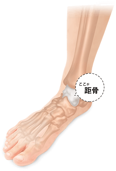 距骨調整は、距骨(きょこつ)という足首にある骨に注目し、この足元のゆがみを改善することにより、全身のバランスを整え、不調のない健康な体を取り戻す新たな骨格調整法です。