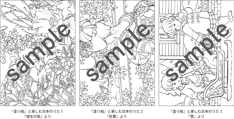 童謡唱歌をテーマにした「塗り絵」と、「歌」を楽しめる『「塗り絵」と楽しむ日本のうた』シリーズ3冊と、こすると消える大人のための色鉛筆『フリクションカラードペンシル 12色セット』がセットになったギフトにぴったりの新商品です。 『「塗り絵」と楽しむ日本のうた』は、1冊に3曲分の「塗り絵」「曲解説」「ルビ入りの歌詞」「歌詞の見やすいメロディ譜」が入っています。