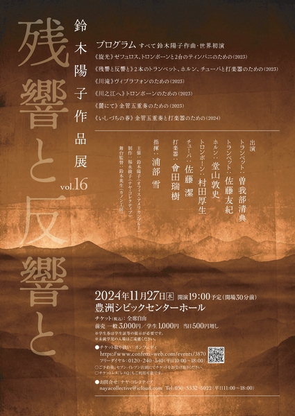 鈴木陽子作品展vol.16『残響と反響と』が2024年11月27日 (水)に豊洲シビックセンターホール(江東区豊洲文化センター)(東京都 江東区 豊洲 2-2-18)にて開催されます。