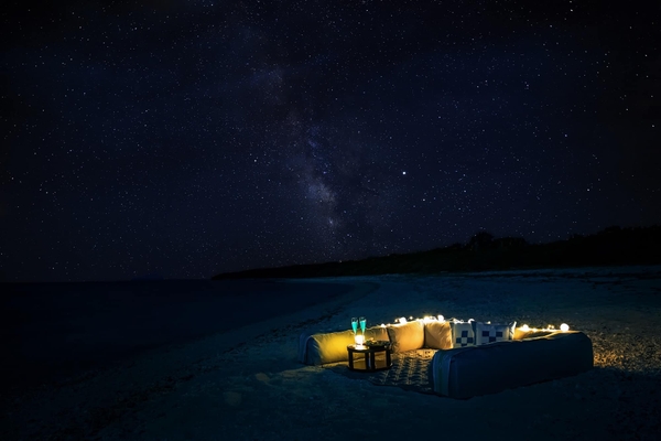 沖縄県・竹富島にある滞在型リゾート「星のや竹富島」は、2020年6月8日から8月23日までの月明かりが少ない日に、海辺のソファに寝転んで天の川を眺める「星降る夜のてぃんがーら*1ピクニック」を開催します。「石垣島・美ら星(ちゅらぼし)マイスター」である星のや竹富島のスタッフが、星空にまつわる話をしながら海辺のソファへ案内し、天の川をイメージしたピクニックプレートとスパークリングワインを提供します。年間で最も綺麗に見えるといわれている夏の天の川を、ふたりだけのために用意された空間で堪能できるピクニックです。