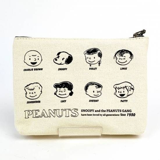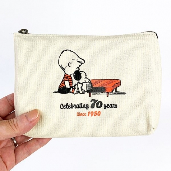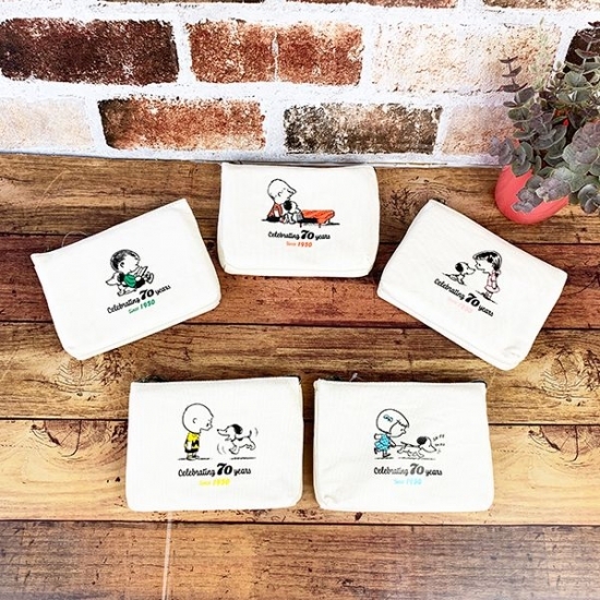 スヌーピー70周年シリーズ♪キャンバス地の3ポケットポーチがレトロでかわいい