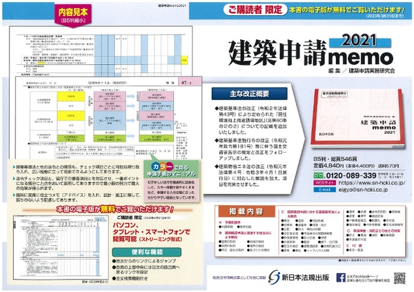 最小限の努力で最大の効果が得られる!むずかしい法令を徹底的に図表化した「建築申請memo2021」を1月28日(木)に発行しました。