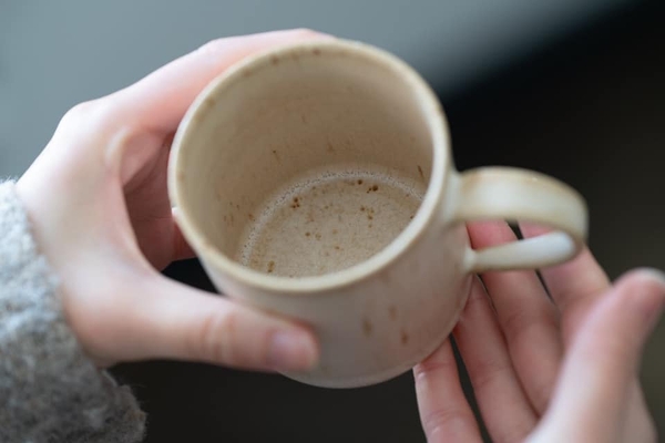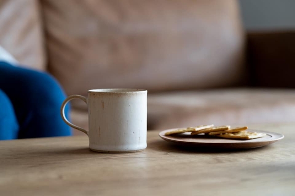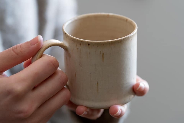 洗練されたシンプルなデザインに温もりを。余計なものを削ぎ落としてシンプルに作られたデザインは、読書や仕事中の「ながら」作業中にも安心してお使い頂ける安定感があります。木肌のように表面に流れる茶色い線は、粘土に含まれる鉄粉が釉薬によって流れたもの。流れ星のように現れています。地元北海道の粘土を10%ほど使用。