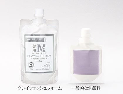 一般的な透明チューブ入り洗顔料の平均サイズは100~110グラム(1ヶ月分)。対してMEDESTHE薬用クレイウォッシュフォームは270グラムの大容量サイズです。少ない量でしっかり泡立つため、コストパフォーマンスが高いのもポイントです。