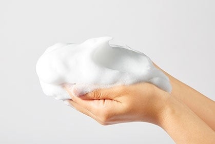 適量を容器や手にとり、水またはぬるま湯でよく泡立てて洗い、その後よくすすいでください。