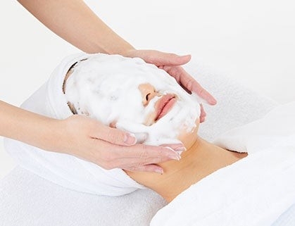 施術の最初である「洗顔」。しっかりと毛穴の汚れや不要な角質を落として土台を整えることが、次の施術・ケアの効果アップにつながります。