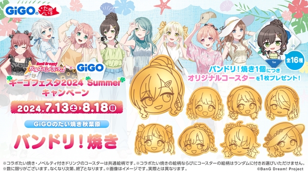 GiGOのたい焼き秋葉原にてオリジナルコースター(全16種)がランダムで1枚付いてくる「バンドリ!焼き」を販売いたします。