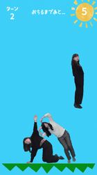 次のカウントダウンが始まるので、交代して上に落ちるポーズを決めましょう。