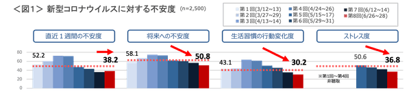 第1回(3月12日〜13日)から隔週で実施しており、第8回となる今回は、緊急事態宣言解除から約 1ヶ月が経った6月26日〜28日に調査を行い、人々の意識・行動について分析しました。