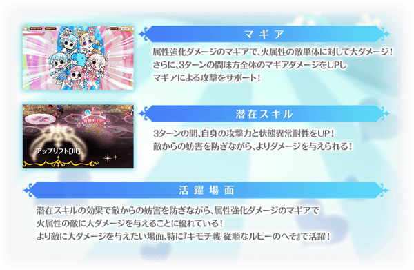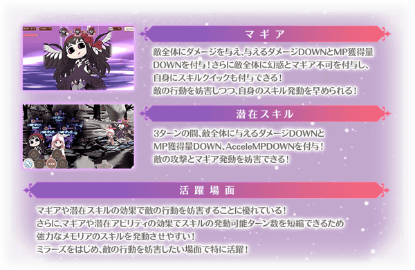 ・魔法少女やメモリアのスキル内容・効果は事前告知の上、変更する場合があります。