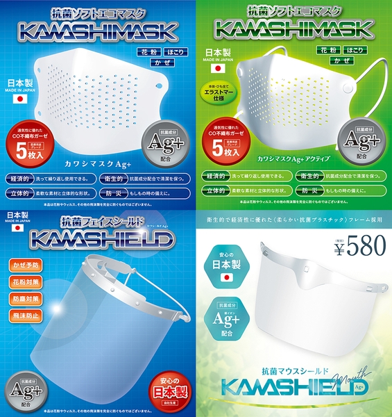 開発から設計、製造まで一貫して、ものづくりの街 大阪府東大阪市にて実施しています。感染症対策グッズとして、オリジナルのエラストマー製マスク「カワシマスクAg+」「カワシマスクAg+ アクティブ」、フェイスシールド「カワシールドAg+」、マウスシールド「カワシールドAg+ マウス」と利用シーンに応じたラインナップとなっています。発売は、河島製作所 楽天市場店およびAMAZONプライムにて(AMAZONは準備でき次第、順次発売開始予定)