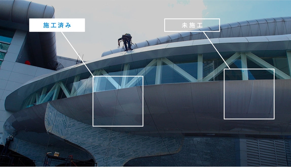 従来の光触媒を利用した商品はバインダー(糊)を必要とするため、費用と施工時間が多く掛かり、二酸化チタンがバインダーに埋もれるため、本来の力を発揮出来ませんでした。