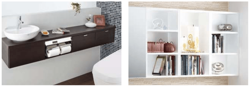 自分の趣味の小物を飾ったりや、観葉植物を置いたりなど。 狭い空間だからこそ出来る事もあります。『トイレ手洗 』なら、カウンターの上に飾ったりなど、またオプションのキャビネットを設置すればミニギャラリーの様にも魅せる事が出来ます。