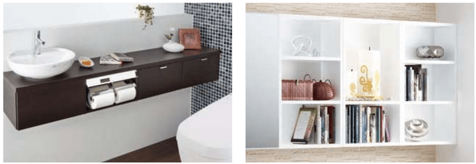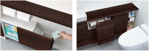 トイレには収納したい物が沢山あります。 でもスペースがなかったりして、どうしても収納が出来なかったり。『トイレ手洗』なら扉の開き方を工夫する 事で、空間のムダなくなり収納スペースになります。 収納物がスッキリ快適に!