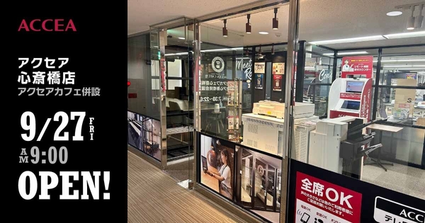 株式会社アクセア(本社:東京都千代田区、代表取締役社長:吉田忠司、以下アクセア)は、2024年9月27日(金)にアクセア心斎橋店をフルサービス店舗として、2024年10月3日(木)アクセア堂島店をアクセアカフェ併設店舗としてリニューアルオープンいたします。