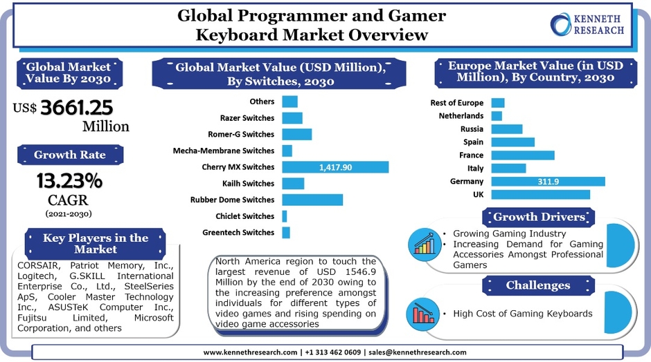リサーチ・ネスターの一部門であるケネス・リサーチは最近、「プログラマーとゲーマーのキーボード市場:グローバル需要分析と機会見通し2030」と題する調査レポートを発表し、これには、業界の成長ドライバー、制約、需要と供給のリスクなどの著名な市場分析パラメータの一部と、COVID-19の影響、市場の成長に関連する最新のトレンドと将来の機会に関する詳細な議論も含まれています。