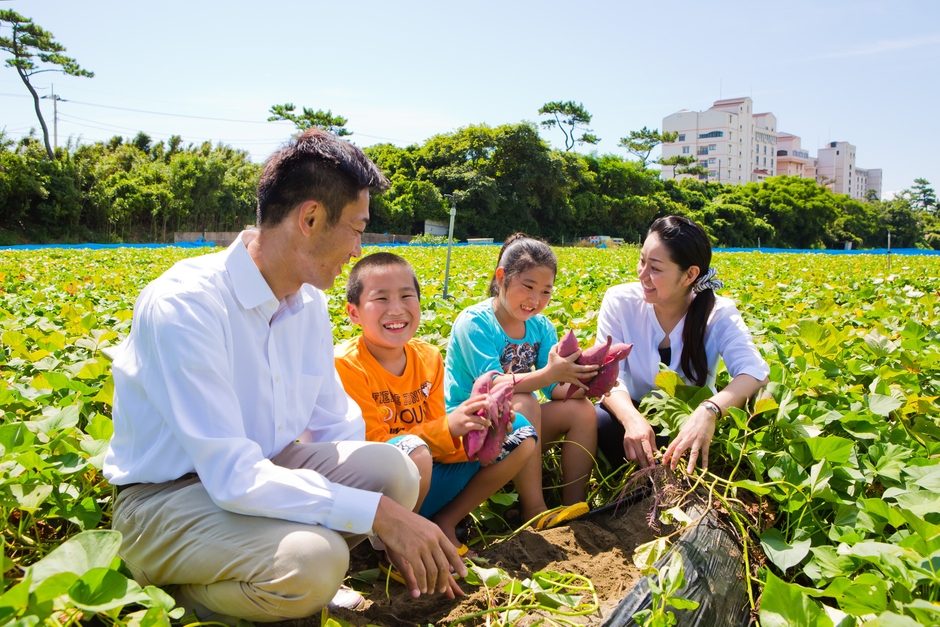 ホテルから歩いて5分。豊富な鳴門の銀砂と呼ばれる海砂の芋畑で収獲するのでお子様でも楽しめます。掘った金時芋は、お一人約1.2kgお土産に。