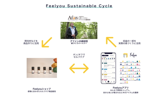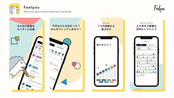 自分自身を大事にすることは周囲の人々へのケアや地球環境の改善に波及することをコンセプトとし、感情共有アプリ「Feelyou」(https://feelyou.app/ja)と、感情に寄り添う商品を扱うECサイト「Feelyou Shop」(https://shop.feelyou.app/)を展開しています。