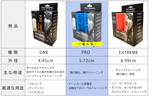FAT GRIPZには3種類のモデルがあります。