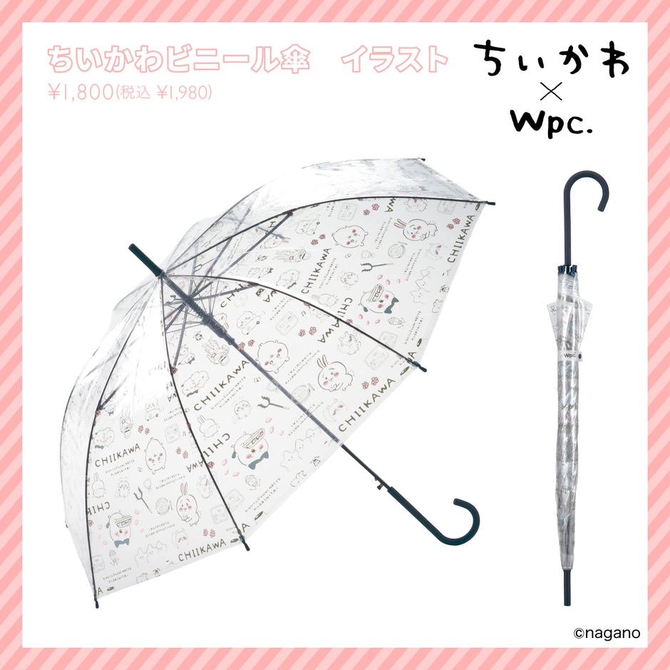 そんな何事にも一生懸命で可愛いちいかわ、ハチワレ、うさぎたちがビニール傘やルームシューズなどWpc.のアイテムになって登場!雨の日だって、おうちにいるときだって、ちいかわと一緒になんか楽しく過ごそう♪