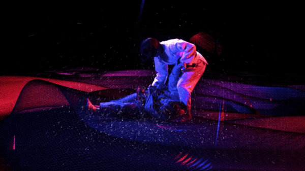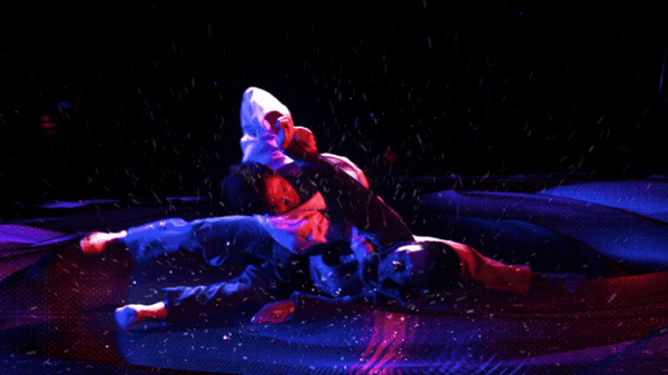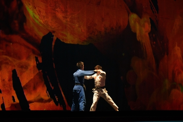 野村さん、阿部兄妹の迫力ある撮影素材にスタイリッシュなモーショングラフィックを重ね、青と赤のライティングを使用し、青は「静」、赤は「動」と柔道の精神を表現。