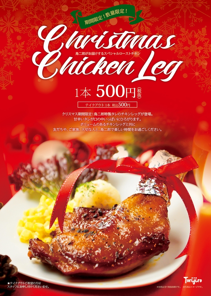 初登場、鳥二郎のスペシャルローストチキンはクリスマス期間限定のスペシャルメニュー。