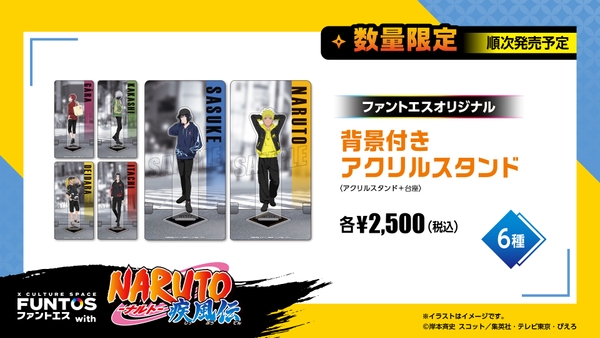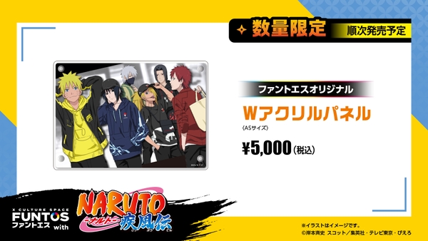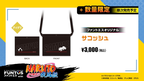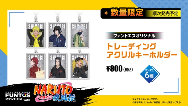 ナルト・サスケ・カカシ・我愛羅・イタチ・デイダラの新規描き下ろしイラストを使用したグッズのほか、