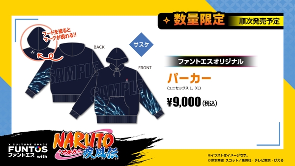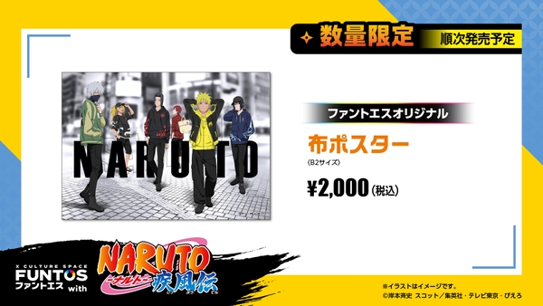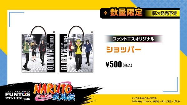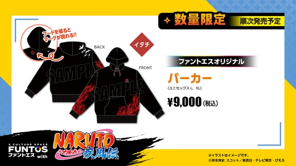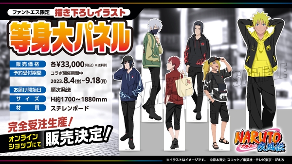 描き下ろしイラストにてナルト達が着用しているアイテムなどを販売いたします。