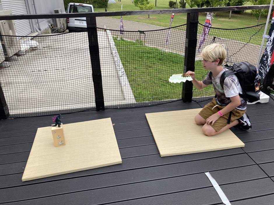 ②「投扇興(とうせんきょう)ゲーム」/日本伝統の遊び。扇を的に向けて飛ばすゲーム